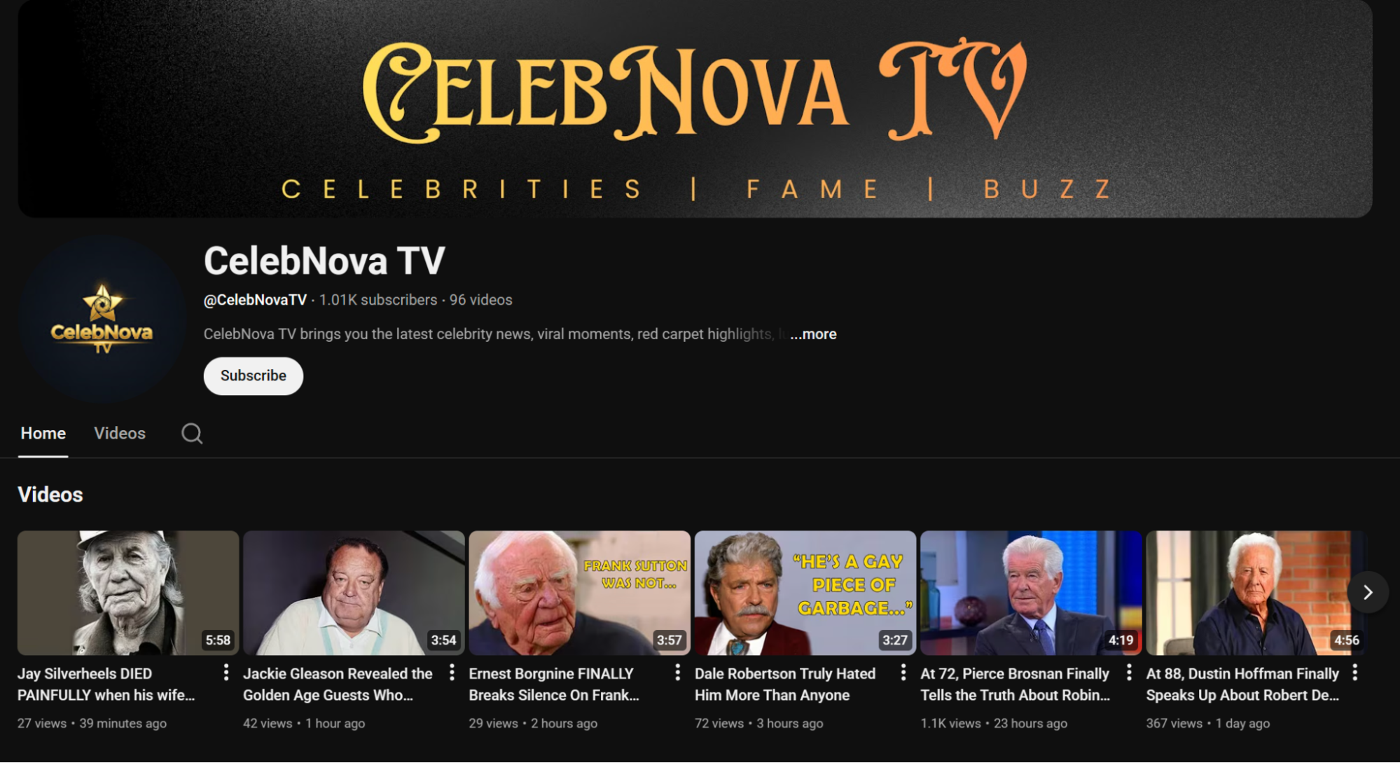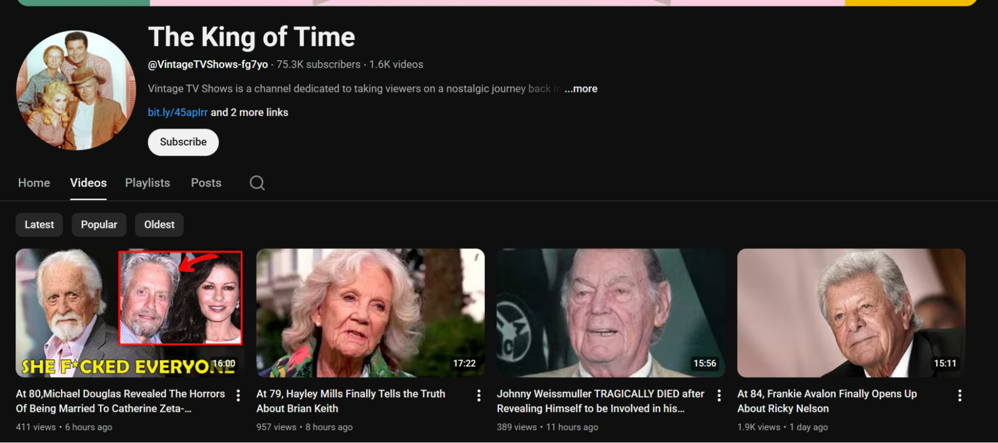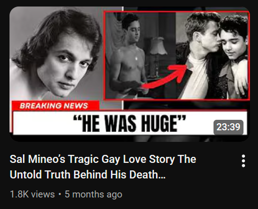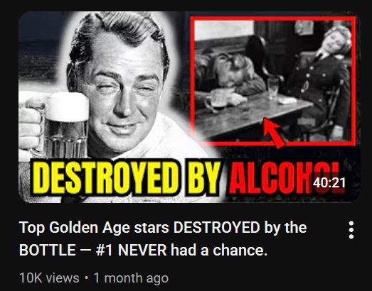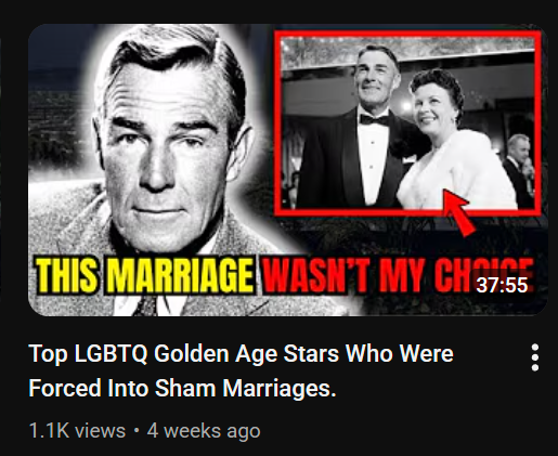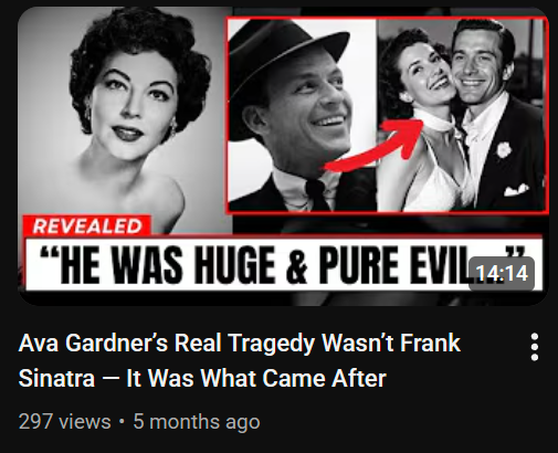 Most of the content centers around golden-age movie stars dropping absolute bombs of fake messy gossip as they near death. The actual videos are AI narration over a slideshow of Google image search results of the celebrities.