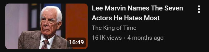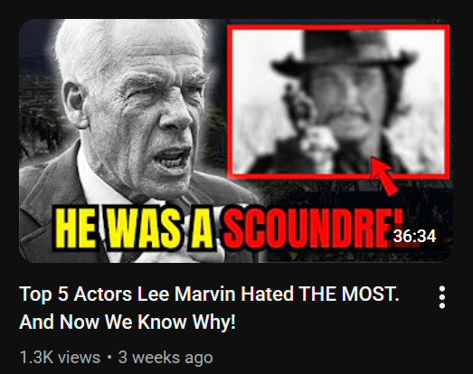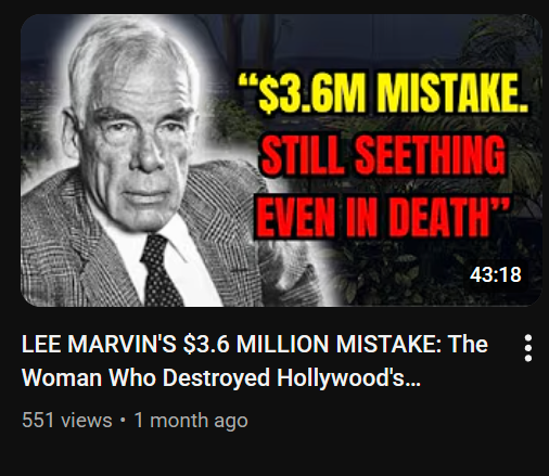 There’s one thing that all of these channels seem to agree on: M Squad’s Lee Marvin was Hollywood’s messiest drama-loving bitch. According to these channels, he spent most of his life constantly complaining about, whining about, and slandering his co-stars.