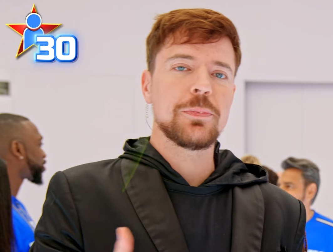 Mr. Beast, who looks like a complete moron wearing a blazer with a t-shirt and some sort of plastic hoodie, constantly makes demeaning short jokes toward his co-host, Kevin Hart, throughout the video.